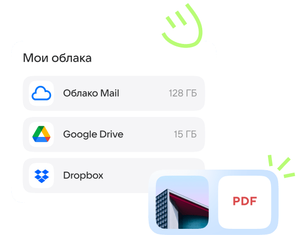 СмотретьПользуйтесь Облаком где удобно: на сайте или в приложении. А ещё попробуйте Облако для компьютера: добавляйте файлы из других облачных сервисов и работайте с ними даже без интернета и быстрее, чем в браузере